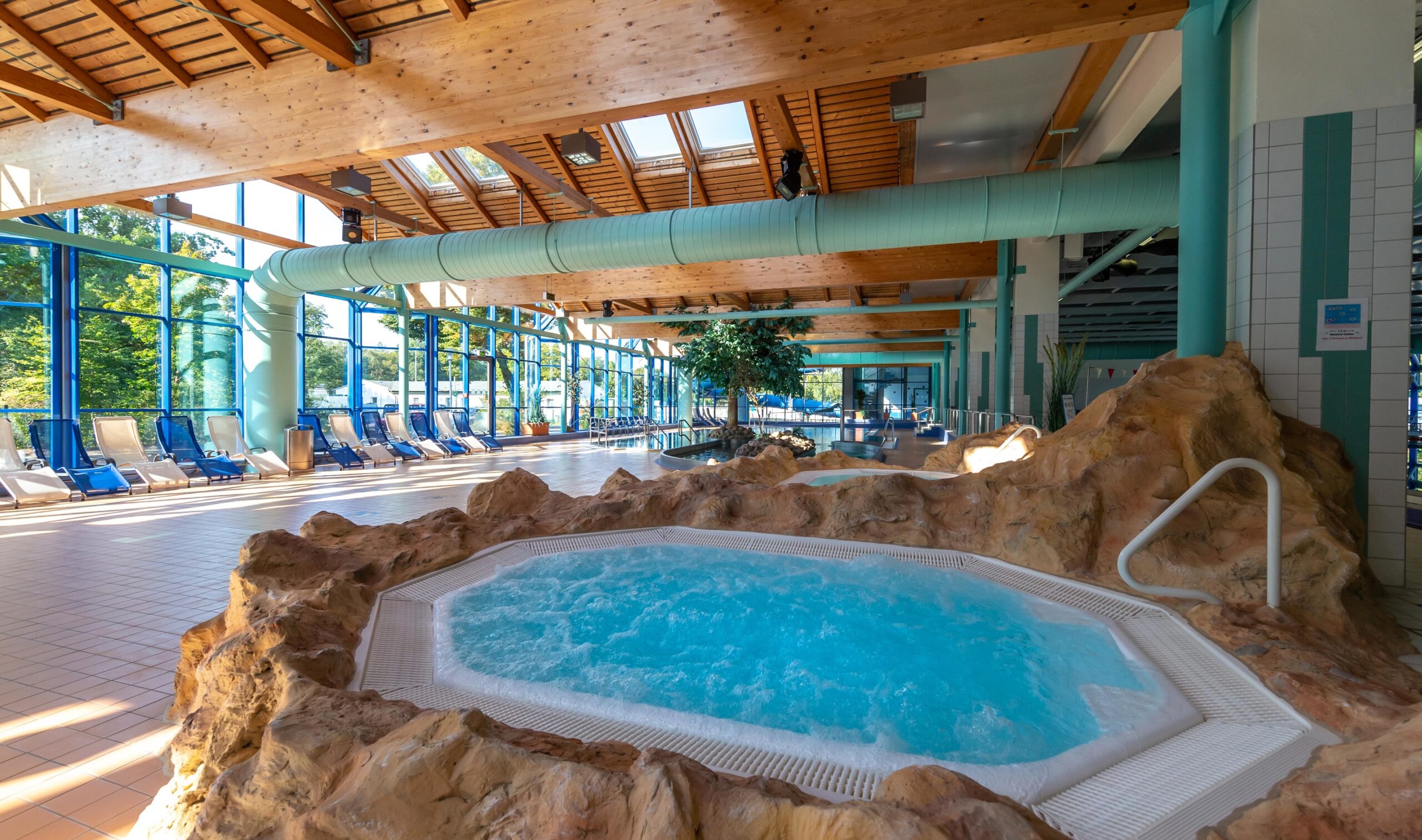 Der Fitnessbereich ist mit modernsten Geräten ausgestattet. Im großzügigen und hellen Saunabereich können Gäste anschließend die Seele baumeln lassen. Zur Auswahl stehen Finnische Sauna, Dampf-, Infrarot-Sauna und eine Blockbohlensauna auf dem Dachgarten. Für Stärkung sorgen das Bistro in der Schwimmhalle und das Restaurant „Sunset“ mit Blick ins Bad.